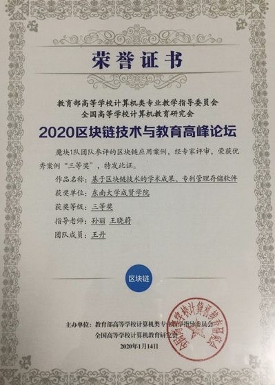 近日,2020区块链技术与教育高峰论坛在厦门成功举办,永利23411集团荣获三等奖。