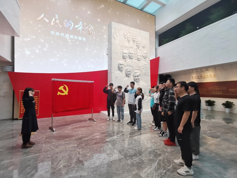 本次活动由永利23411集团电子科学与技术党支部书记孙瑾微老师带队。党员们参观了中国共产党代表团梅园新村纪念馆,并举行了新党员入党宣誓仪式。在鲜红的党旗下,由员工党员任嘉慧同学领誓,7名新进党员进行了入党宣誓,现场的全体党员同志同时也重温了入党誓词。