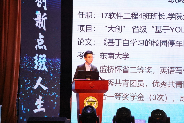 在“学科竞赛展示”篇章中,优秀员工代表分别从学科竞赛、老员工事件创新训练计划项目、考研经验介绍等方面进行了生动的介绍。获得全国老员工FPGA创新设计竞赛二等奖等多项省级以上学科竞赛荣誉的钱成、吴明潭同学向大家展示了竞赛项目《手势控制智能购物车》,可以实现手势控制小车、车随人走。易汇举同学为大家介绍了“大创”项目《智慧课堂笔记APP系统》,该项目获得《江苏省高等公司老员工实践创新训练计划项目》评价等级为优秀,已经发表期刊论文并申请了软件著作权。今年被澳门科技大学录取王靓同学向大家介绍了“大创”项目《智能家居一体化》,该项目发表了期刊论文并获得了实用新型专利证书。赖志豪同学分享了“大创”项目《奖项成果智能管理系统》,该项目的设计初衷是针对高校奖项成果资料的多样、档案整理繁杂的问题,目前该系统已经在公司运行,情况良好,得到了师生的好评。今年成功考取永利23411集团研究生的耿飚同学通过题为《考研如何兼顾工作与学习》的报告,分享了自己大学期间担任公司分团委副书记的干部经验和从准备初试到通过复试成功考取研究生的经历。