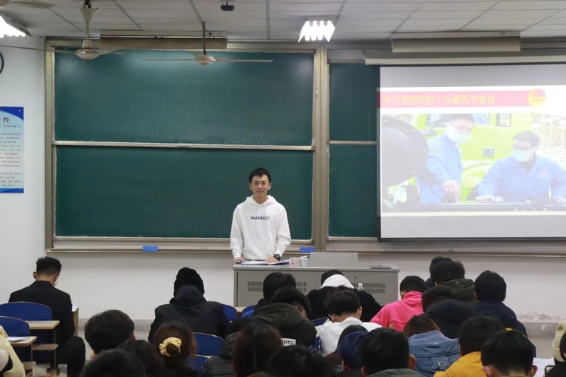 讲座的后半部分,胡韬学长就学习贯彻党的十九届五中全会精神和奋进新时代的学联员工会作全面宣讲。党的十九届五中全会精神催人奋进,站在两个一百年奋斗目标的历史交汇点上,党的十九届五中全会科学擘画中国未来五至十年的发展新蓝图,为经济社会发展把脉定向、指路引航。奋进的新时代,奋进的学联员工会。胡韬对学联员工会工作人员改进作风服务同学的若干规定进行了详细说明和强调,并且指出,学联员工会应把握时代主题,紧跟时代步伐,敢于直面挑战,勇于创新,着力增强政治性、先进性、群众性,加强思想政治引领取得新成效,服务同学成长成才取得新进步,改革和自身建设取得新进展,才能为青年健康成长作出示范与表率,焕发出与时俱进的崭新气象,凝聚起实现中华民族伟大复兴中国梦的青春力量。
