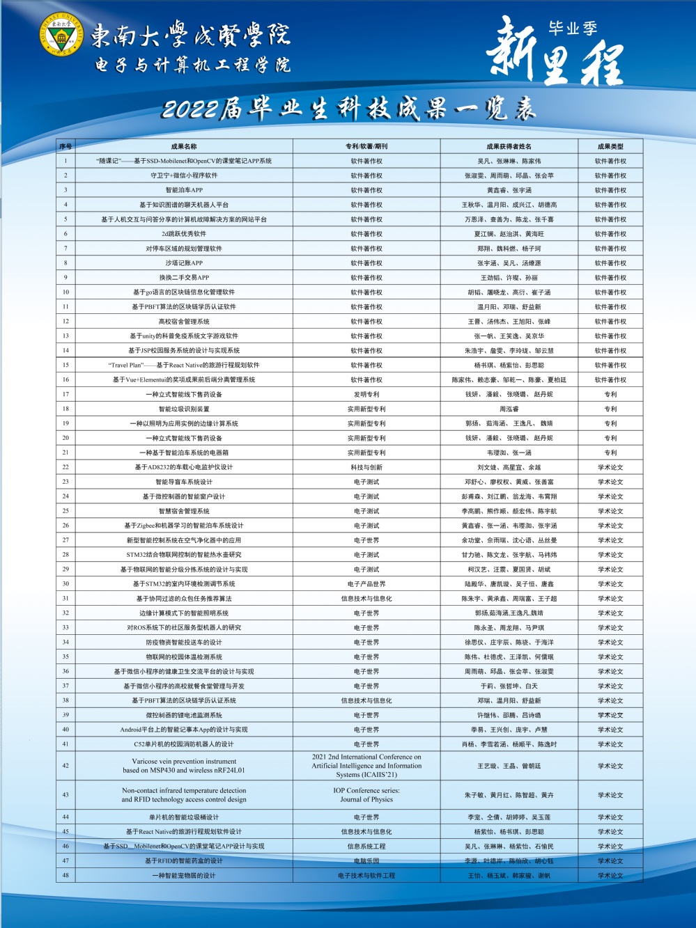 永利23411集团2022届毕业生科技成果一览表