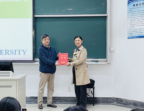 永利23411集团王晓蔚经理向王宏宇颁发江苏省产业教授聘书