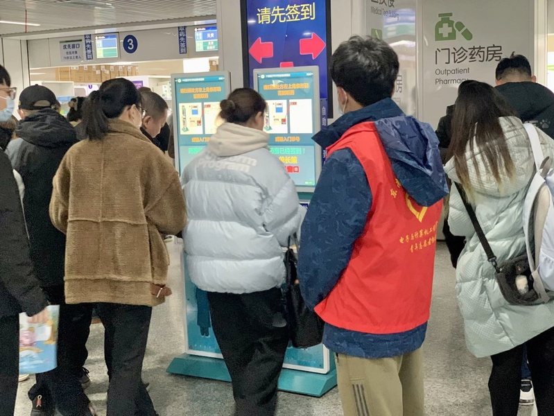 志愿者们在服务站或者自助挂号机附近,帮助医院的病人在自助机上挂号、取号、缴费,减轻在人流聚集之时,人工缴费挂号处的工作负担,以及解决一些挂号缴费机常见的故障问题,同时,引导病人前往相应的科室门诊和需要检查的楼层。