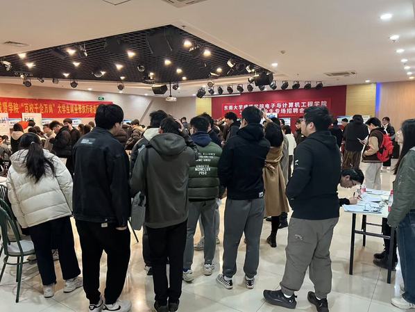 招聘会现场来自不同行业的19家企业提供了236个不同类型的就业岗位,涵盖了多个行业领域,从新兴的科技行业到传统的制造业,从金融服务到文化创意产业。其中南京兄游信息科技有限公司、南京领创信息科技有限公司、杭州得明电子有限公司、无锡核晶科技电子有限公司几家企业尤为引人注目,它们作为员工企业,承载着浓浓的母校情怀,也怀揣着助力学弟学妹们成长成才的殷切期望,为招聘会增添了一抹别样的温暖色彩。现场公司分团委设置了咨询台,为同学们解答就业相关的问题,如简历投递、面试技巧等。