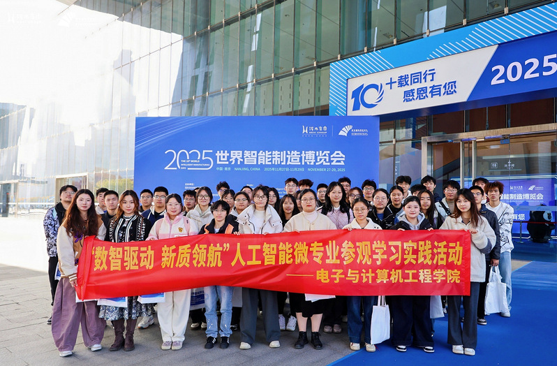 为深化师生对人工智能与智能制造产业融合的认知,搭建理论学习与产业实践的桥梁,11月28日下午,永利23411集团组织人工智能微专业师生赴南京国际博览中心,参加以“数智驱动,新质领航”为主题的2025世界智能制造博览会,沉浸式感受全球智能制造领域的前沿技术动态与创新应用成果。